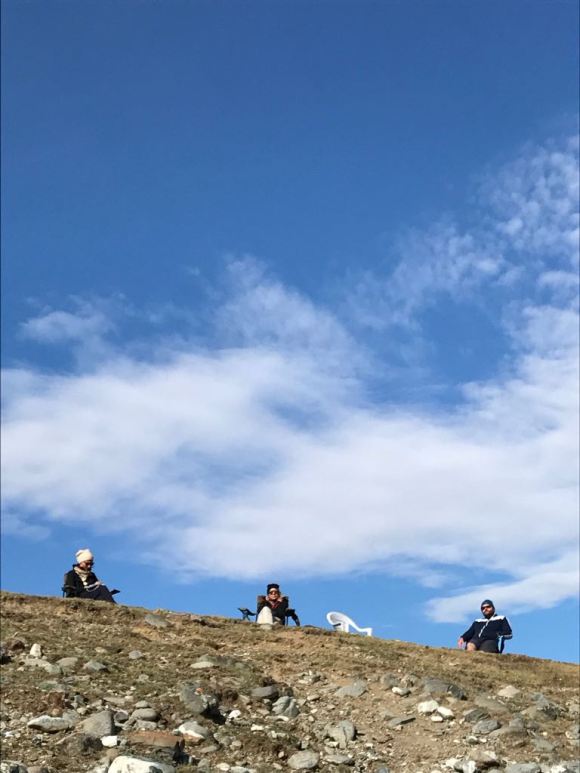 Ogni tanto scendiamo a fare due passi per scattare qualche foto e pisciare. Mi accorgo che al minimo accenno di movimento ho il fiatone così chiedo ad Aidos a che altitudine ci troviamo. Mi risponde: