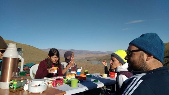 Il mattino seguente possiamo finalmente renderci conto della bellezza e dell’isolamento del luogo in cui ci troviamo. Mentre usciamo alla spicciolata dalla ger stropicciandoci gli occhi troviamo la tavolata già allestita al di fuori; proprio quella che si chiama “breakfast with a view”. E’ il primo momento del viaggio in cui ho la reale sensazione di essere in vacanza.