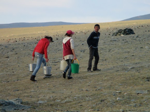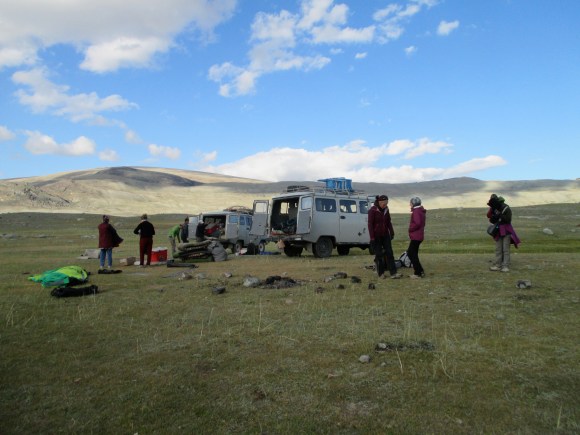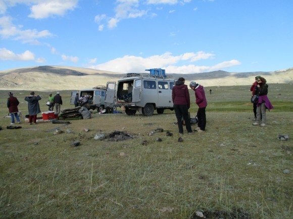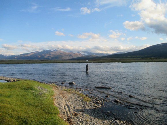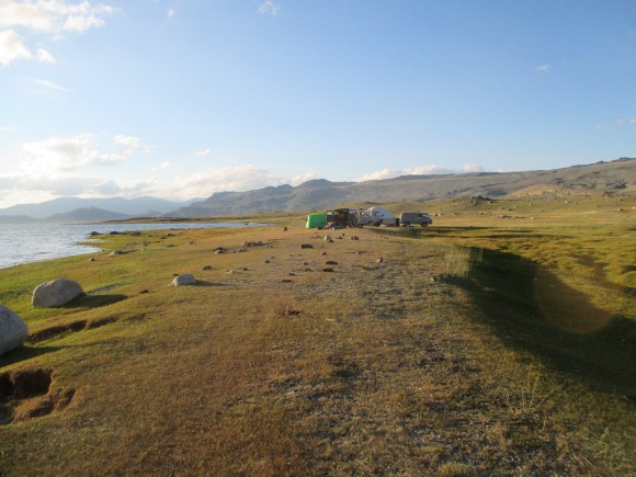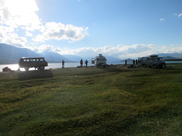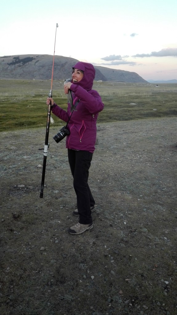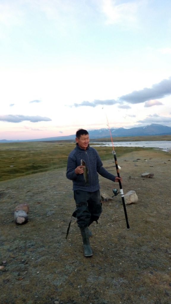 Siamo organizzatissimi, ognuno indaffarato con i propri compiti. I montatori montano, le cuoche cucinano, tutti noi cazzeggiamo. C’è chi accende il fuoco, chi pesca e chi stappa bottiglie di birra e vodka precedentemente acquistate in un market di Khovd. In breve tempo la ger è montata, la tavola imbandita e le nostre tazze si riempiono e svuotano con rapidità. Attorno a noi non c’è anima viva ma bastano e avanzano i sottoscritti per violentare il silenzio da cartolina del luogo.