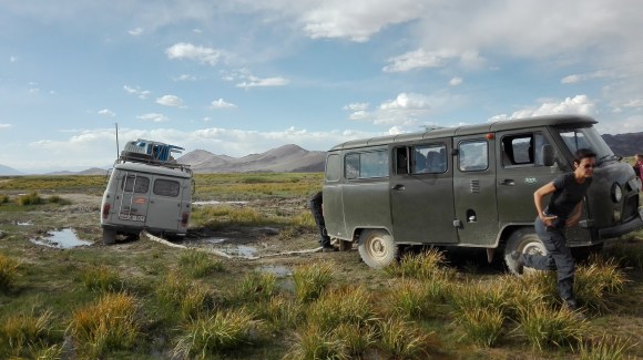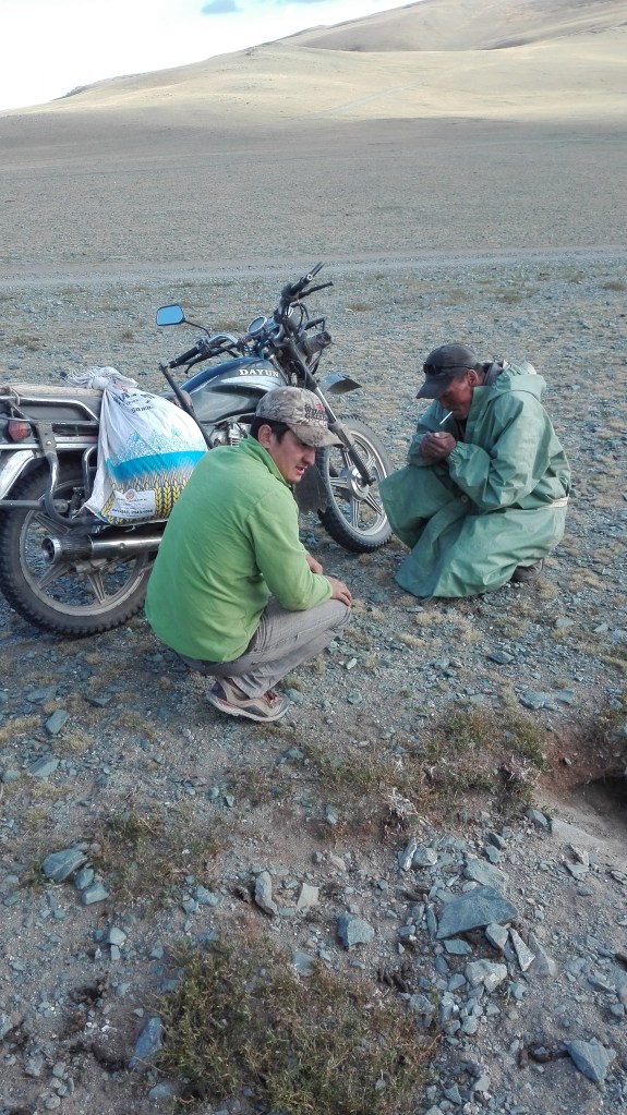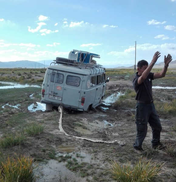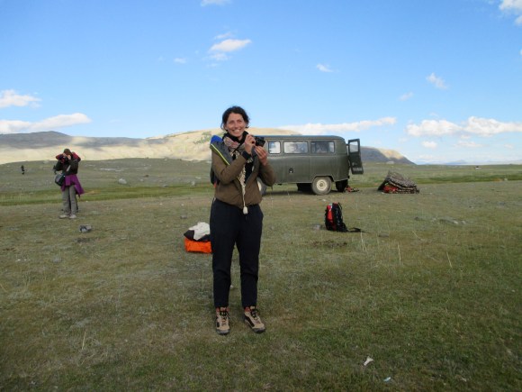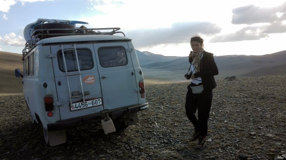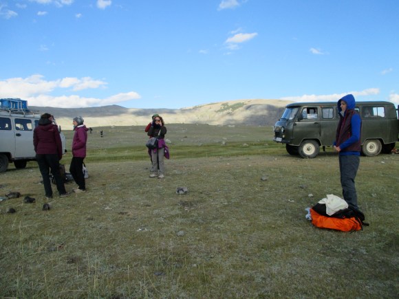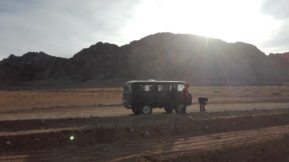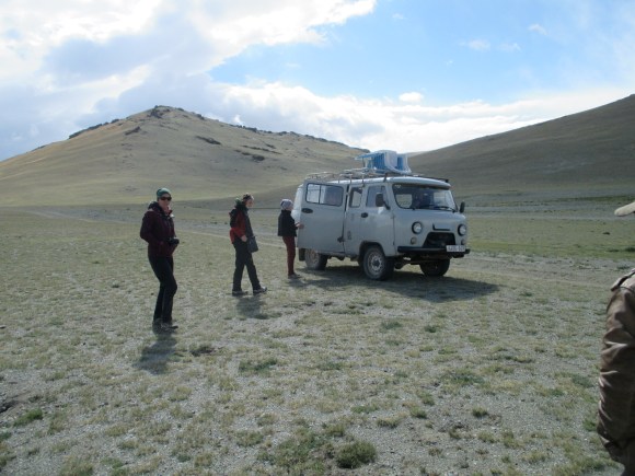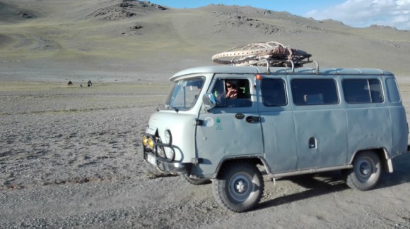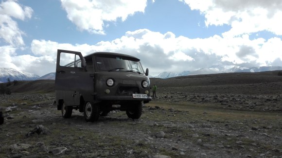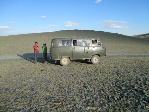 Atterriamo a Khovd verso ora di pranzo; si tratta dell’ultimo avamposto di civiltà prima di arrampicarci sulle montagne. Facciamo conoscenza con i nostri nuovi autisti e soprattutto con le nostre nuove UAZ. Il ricordo di Katiusha è ancora molto presente ma dobbiamo superarlo… scurdamoce ‘o passato. Il nostro nuovo mezzo viene battezzato “La Karla”. Si tratta di una UAZ color verdone dall’aspetto più moderno rispetto a chi l’ha preceduta ma già con 540000 km sul groppone. Gli interni sono più definiti con dei simpatici sedili in pelle di peluche disposti in modo che non si guardino in faccia. Il nostro nuovo autista si chiama Aidos che ci pare sin da subito molto simpatico.