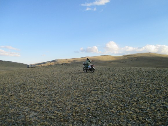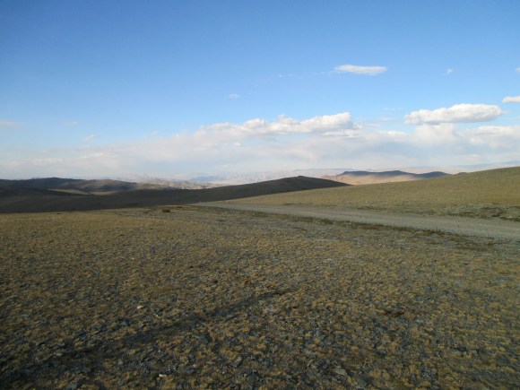Da Khovd cominciamo a salire attraverso paesaggi incredibili che risentono della mancanza di pioggia. Corriamo rapidi su una pista sterrata ma al nostro fianco fervono i lavori per la costruzione di una strada asfaltata.