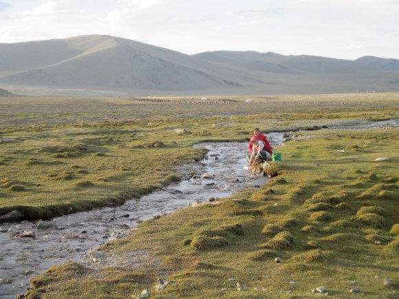 Il mattino seguente decido che è tempo di vincere gli ultimi pudori perciò mi reco al fiume per un lavaggio integrale. Acqua ghiacciata e sensibilità degli arti (e non solo) azzerata per una buona mezz’ora però che soddisfazione! Naturismo mongolo – bellezze al bagno, servizio completo di asciugatura al sole… Almeno fino a quando non inizia a piovere.