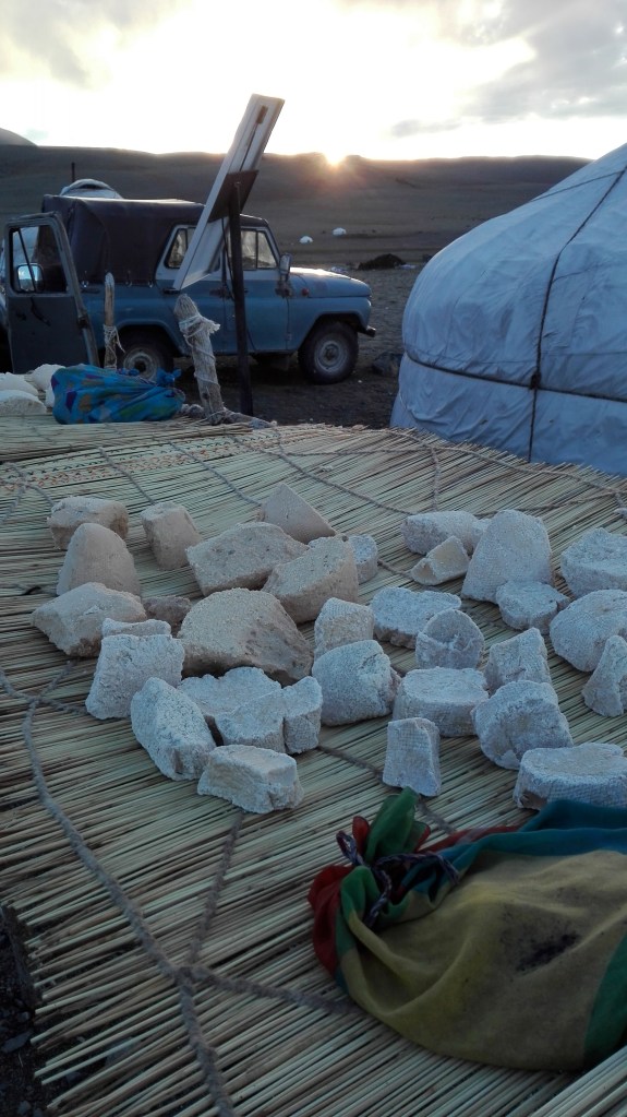 La cultura Kazaka la possiamo toccare con mano entrando nelle ger delle famiglie che ci accolgono offrendo il tradizionale milk tea, possenti e durissimi bocconi di formaggio quark, latte fermentato e tazze di vodka fatta in casa.