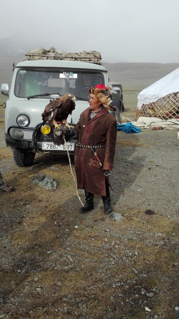Puliti e profumati è tempo di conoscere un’altra delle tradizioni kazake ovvero la caccia con l’aquila. Il capofamiglia ci spiega (grazie al nostro interprete Ene) come funziona e come vengono allevate le aquile femmine che vengono addestrate a cacciare per l’uomo. Immancabili le foto con lo speciale guanto protettivo a sostenere l’animale.