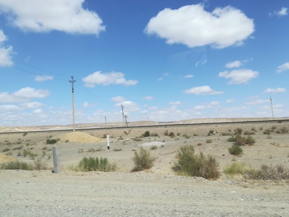 Mano a mano che ci allontaniamo da Khiva il deserto prende il sopravvento e attraversiamo zone totalmente disabitate. Sulla nostra destra solo una linea ferroviaria in costruzione.