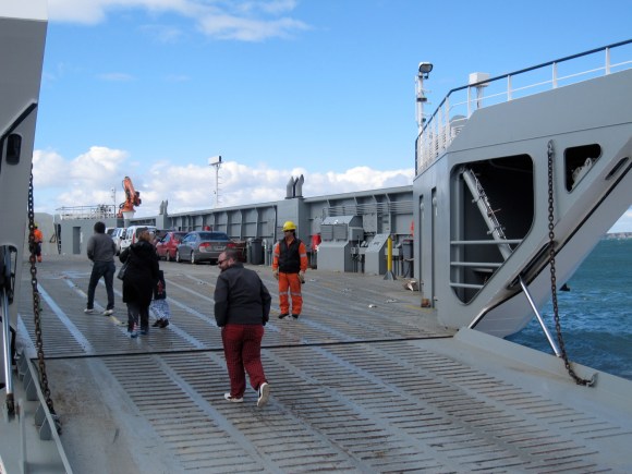 La traversata dura 15 minuti. Lo stretto è molto agitato ma l’hot dog ingerito funge da tappo e nulla si ripresenta in uscita.