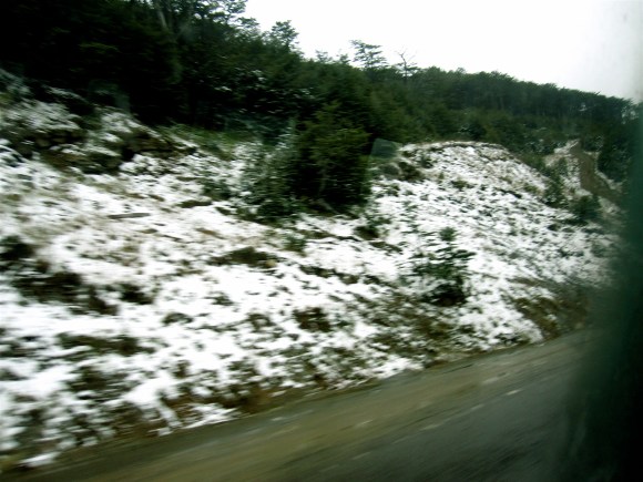 Rientriamo così in Argentina a panza piena e verso le 17:30 siamo a Rio Grande, sulla costa est della Isla Grande, e incredibile, cambiamo autobus! Di nuovo. Questa volta ci tocca un pulmino 9 posti sul quale percorreremo l’ultimo tratto fino ad Ushuaia. Siamo sempre meno, sempre i mejo! Da Rio Grande la strada inizia a salire, sono gli ultimi blocchi di Ande, la grande cordigliera che si tuffa tra gli oceani a un passo dall’Antartide. Arriviamo al Passo Garibaldi e inizia a nevicare… vi abbiamo già parlato del concetto di estate patagonica?!?