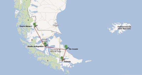 Nicola: Mi accomodo sul mio sedile affondando le ginocchia in quello davanti. Sará un bel viaggio. Mentre osservo di quando in quando le piatte distese secche del paesaggio, leggo un libro in italiano e ciò richiama l’attenzione del mio compagno di viaggio, un signore sulla cinquantina, argentino, che sta tornando a Rio Grande assieme a sua moglie e la sua bambina che si trovano nei sedili dietro. Sono emozionatissimi e mi raccontano il loro viaggio epico da Rio Grande a Puerto Natales dove hanno visitato una loro parente. Osservano tutto con felicitá e descrivono il paesaggio con patos, calcolando la differenza di orario tra il primo viaggio di andata in autobus e questo, a mano a mano che passiamo i paesini. Per loro, abituati a rimanere nel loro piccolo paese, é stata veramente una bella esperienza e rimangono stupiti quando racconto del mio viaggio da Cordoba fino ad Ushuaia. Gente bellissima, mi fanno un’ottima compagnia.